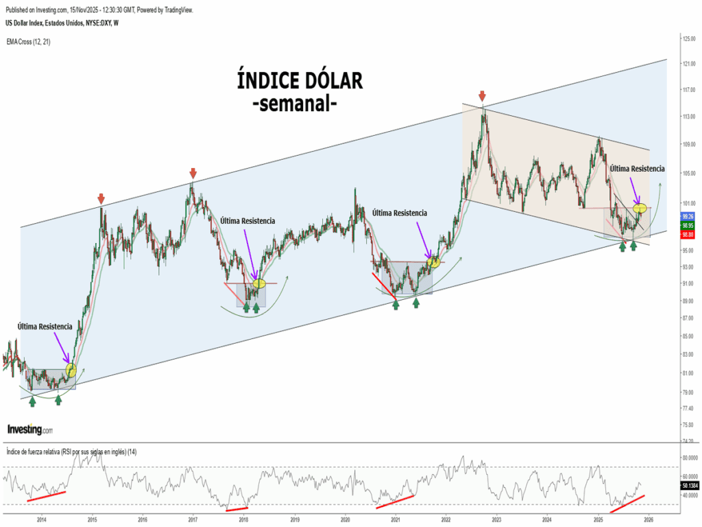 Mientras “la pelota sigue debajo del mar” dado que el índice del miedo “VIX” no ha roto al alza el nivel de 23 en cierre semanal, el dólar sigue con la convicción de tener un “papel protagonista” en las próximas semanas, y su estructura de reanudación alcista sigue intacta.