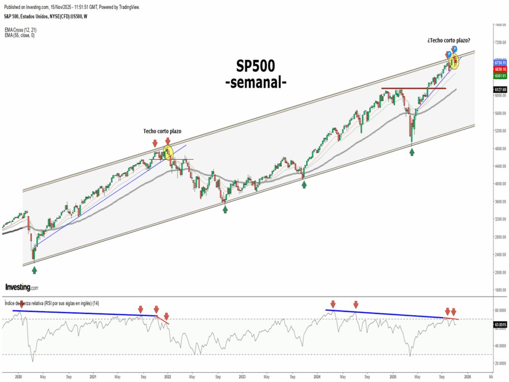 Llevamos observando hace varias semanas un fuerte debilitamiento de la inercia alcista de las bolsas a pesar de que siguen en zonas de máximos con aparente calma, pero mostrando divergencias bajistas que suelen resolverse con correcciones.