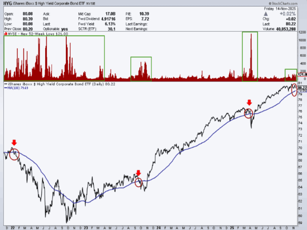 - Debilidad de la salud interna de mercado (divergencia bajistas Línea AD vs. NYSE + Aumento significativo de valores en mínimos de 52 semanas).